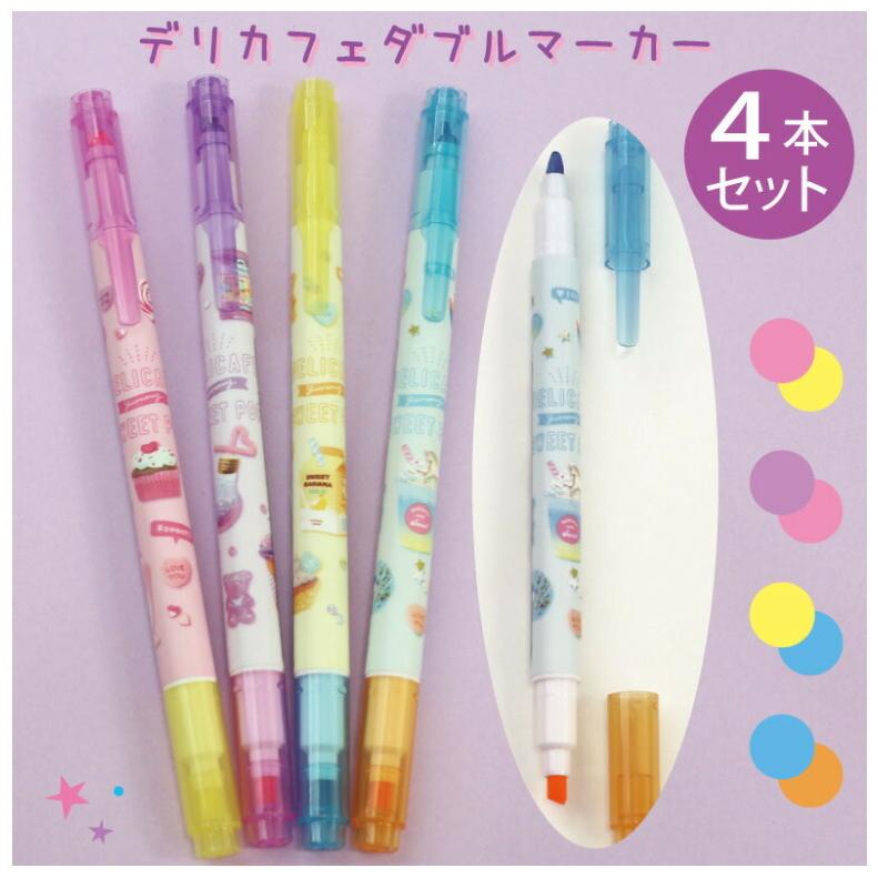 文房具 かわいい 文具 ペン カラーペン デリカフェダブルマーカー4本セット 香り付き 新学期 筆記具 女の子 可愛い プレゼント 小学生 おしゃれ 人気 新入学 Jik74 ジュニア バッグの店 プリーズ 通販 Yahoo ショッピング